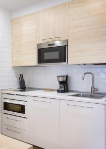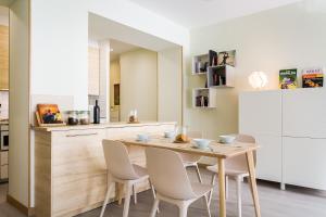 В апартаментах три спальни, гостиная с паркетным полом и телевизором с плоским экраном. Полностью оборудованная кухня оснащена современной техникой: духовкой, холодильником, посудомоечной машиной, микроволновой печью, тостером, электрическим чайником а также принадлежностями для приготовления чая и кофе. Дополнительные удобства включают отопление, гладильные принадлежности (утюг и гладильную доску), зону отдыха с раскладным диваном, шкафы для хранения одежды, рабочее место за столом, имеется стиральная машина для гостей и детские кроватки.